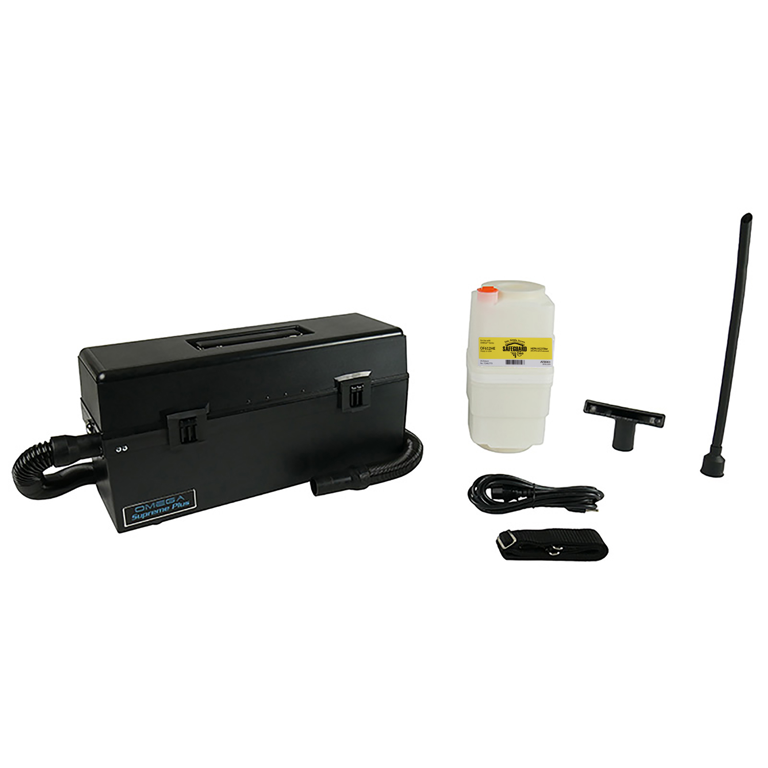Specifically designed for use in cleanroom environments. The Atrix Omega Supreme HEPA Cleanroom 100,000 Vacuum has a HEPA filtered exhaust to reduce carbon particle disbursion from the motor brushes, is ESD safe and comes as standard witha true HEPA 1 gallon (3.8L) filter cartridge. This series of cleanroom vacuums are EMI/RFI filtered, so they are perfectly safe to be used in and around electronic equipment.